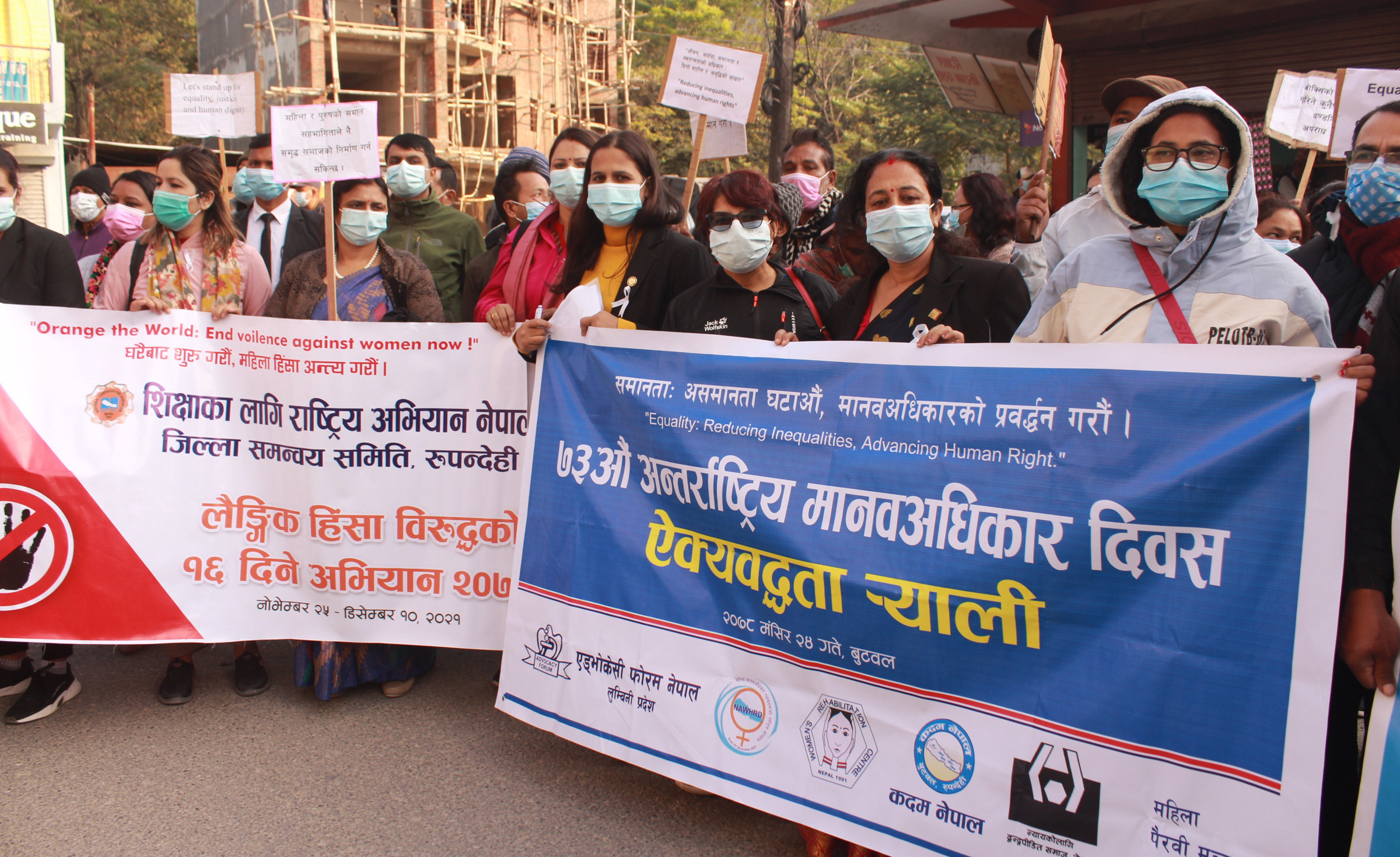 संयुक्त राष्ट्रसङ्घ महासभाद्वारा सन् १९४८ डिसेम्बर १० का दिन मानवअधिकारको विश्वव्यापी घोषणापत्र जारी भएको दिनलाई अन्तर्राष्ट्रिय मानवअधिकार दिवसका रूपमा प्रत्येक वर्ष मनाउने गरिन्छ । सदाझैँ यस वर्ष नेपालमा पनि विविध कार्यक्रमका साथ अन्तर्राष्ट्रिय मानवअधिकार दिवस मनाइँदैछ ।
