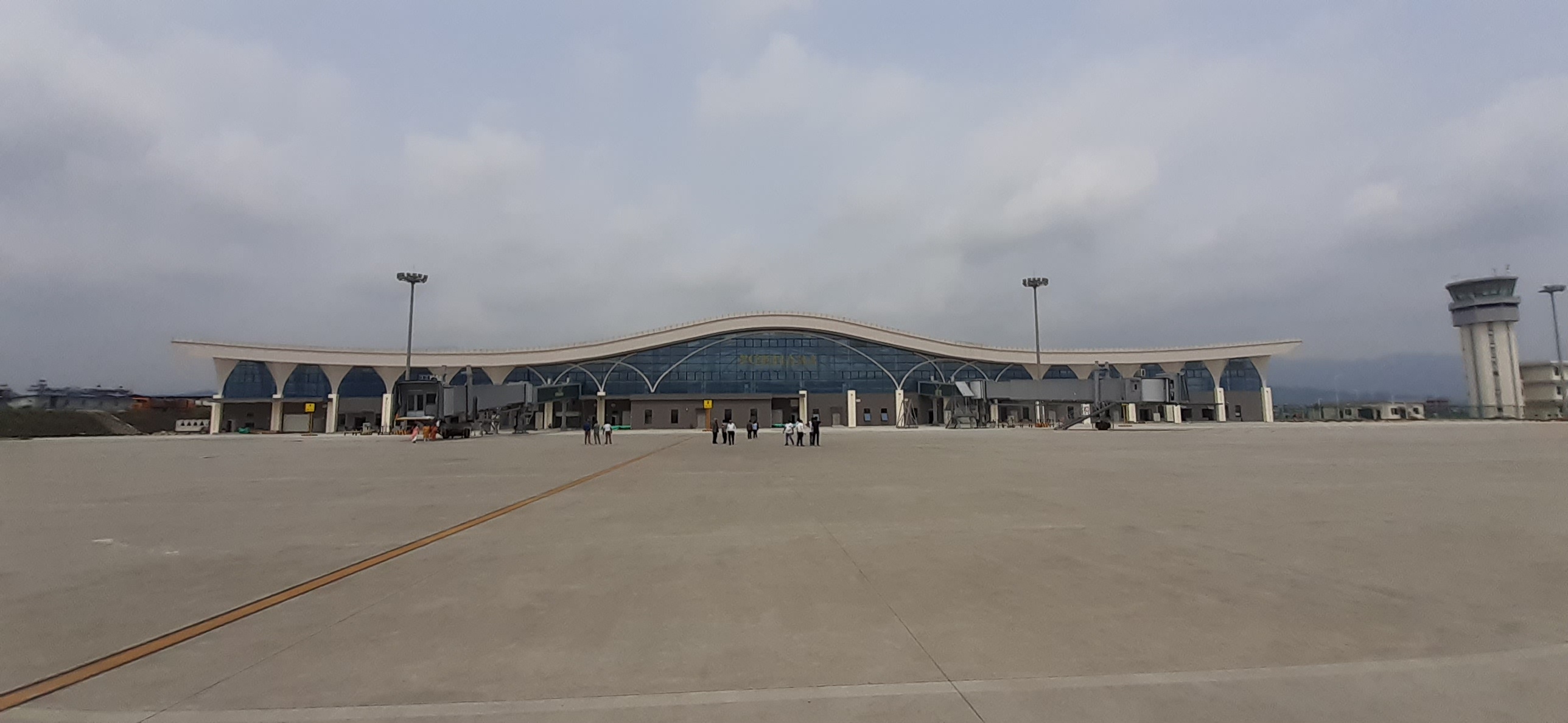 विमानस्थलको ९३ प्रतिशत काम सम्पन्न भएपछि गत चैतमा चिनियाँ निर्माण कम्पनीले महत्वपूर्ण पूर्वाधार सकिएको भन्दै नेपाललाई हस्तान्तरण गरेको थियो । विमानस्थलको मुख्य भवनसँगै १४ भवनको निर्माण र सजावट गरिसकिएको छ । त्यस्तै आन्तरिक र बाह्य टर्मिनल भवन, धावनमार्ग, एयर ट्राफिक कन्ट्रोल रुम, ट्याक्सी वे, पार्किङ तथा ड्रेन, हाई मास्ट फ्लड लाइट, ट्रान्सफर्मर बक्स, फुटपाथ, लिफ्ट, विमानस्थललाई राजमार्गसँग जोड्ने सडक, विमानस्थलभित्रका स्थानलाई जोड्ने सडक, जहाज पार्किङ, एयर साइड र ल्यान्ड साइडलगायतका काम सबै सम्पन्न भइसकेका छन् ।