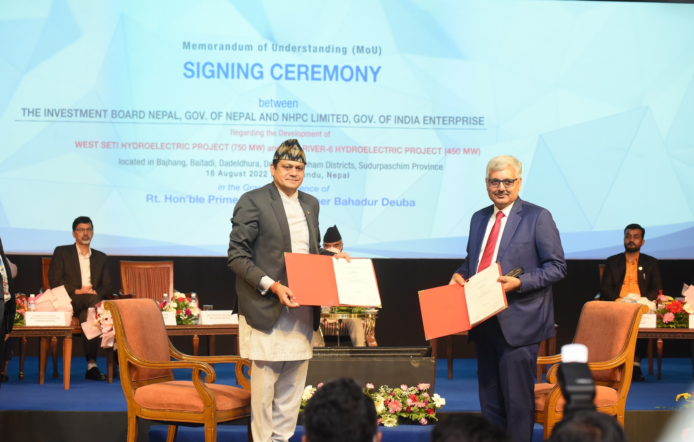 बिहीबार सम्पन्न समझदारीपत्रमा लगानी बोर्डका प्रमुख कार्यकारी अधिकृत सुशील भट्ट र एनएचपिसीका अध्यक्ष एवं प्रबन्ध निर्देशक अभयकुमार सिंहले हस्ताक्षर गर्नुभएको थियो । सन् २०१९ मा बोर्डले आयोजना गरेको लगानी सम्मेलनका क्रममा नै एनएचपिसी र एचआइडिसीएलबीच ऊर्जा क्षेत्रमा सहकार्य गर्नेसम्बन्धी समझदारी भएको थियो । प्रस्तावकले पश्चिम सेती जलविद्युत् परियोजना सर्वेक्षण अनुमतिपत्रका लागि हस्ताक्षर भएको मितिले ४५ दिनभित्र आवेदन गर्नुपर्नेछ । सेती–६ परियोजनाका लागि छ महिनाभित्र आवेदन गर्नुपर्ने व्यवस्था छ ।