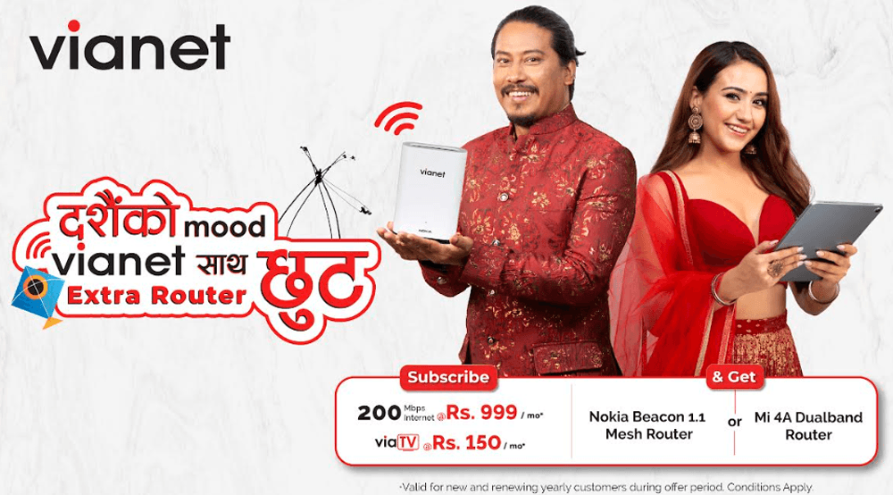 काठमाडौँ । आउँदै गरेको दसैँमा आफ्नो ग्राहकलाई थप सुविधा दिने उद्देश्यले भायानेटले आकर्षक अफर ल्याएको छ ।