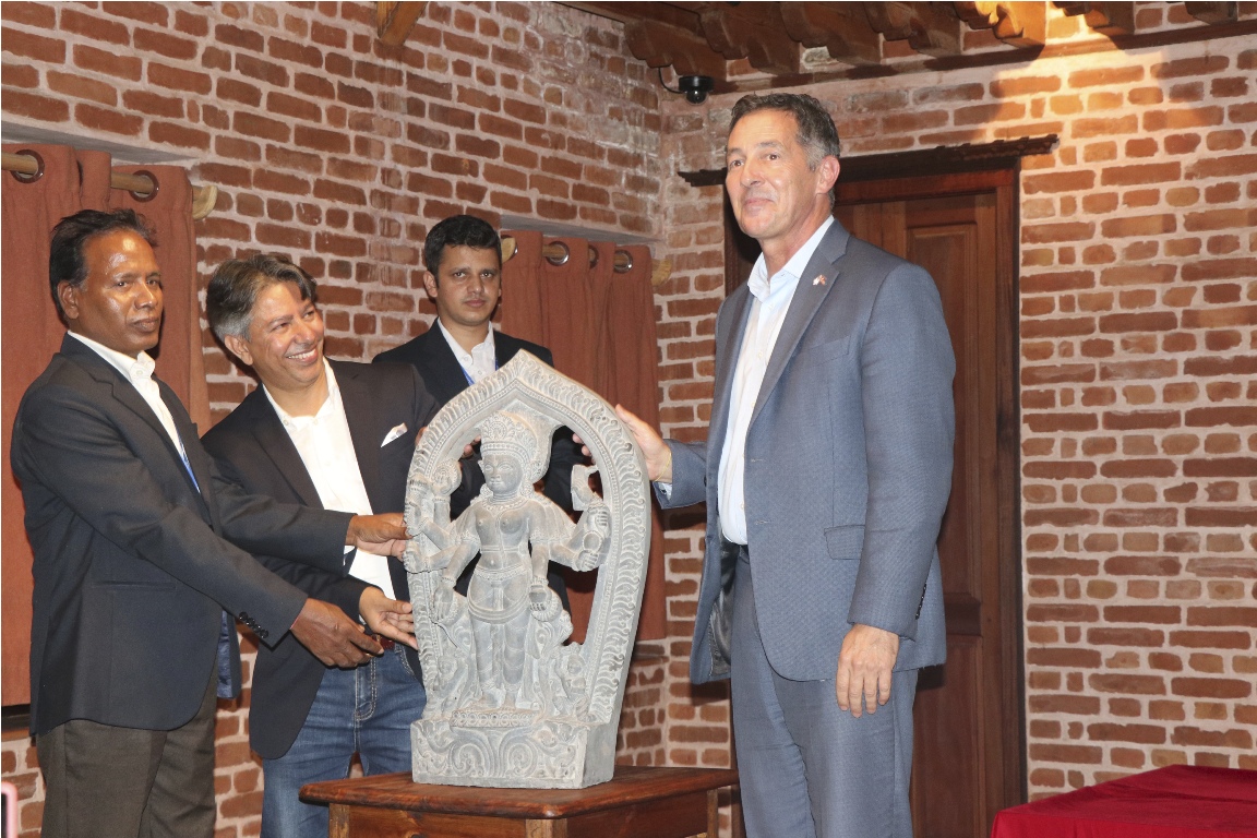 “हामीे पनौतीमा म्युजियम अफ स्टोलन आर्टस् स्थापना गर्दैछौँ, त्यसको तयारी करिब पूरा भइसकेको छ । लक्ष्मीनारायण मूर्तिको प्रतिरुप बनाएर पनौतीको निर्माणाधीन ‘म्युजियम अफ स्टोलन आर्टस्’मा राख्ने तयारी गरिरहेका छौँ”, उहाँले भन्नुभयो, “पाटनबाट हराएको त्यहीँ मूर्ति राजदूत बेरीसहितको सहयोगमा घरफिर्ता गर्न सफल भएपछि आज त्यही मूर्तिको प्रतिरुप उहाँलाई उपहार दिन पाउँदा हामी पनि निकै खुसी भएका छौँ ।”