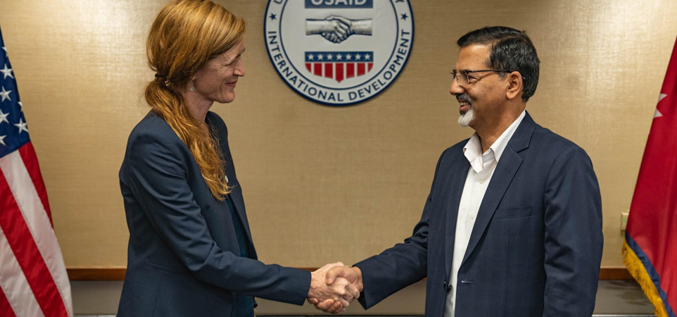 यसैगरी पावरले नेपालका अर्थमन्त्रीसँगको भेटघाट फलदायी रहेको, नेपाल अमेरिका साझेदारी र नेपालको प्रजातान्त्रिक अभ्यासको प्रगतिका लागि सहयोग रहने बताउनुभएको छ । सामाजिक सञ्जालमार्फत पावरले लेख्नुभएको छ, 'तत्कालका चुनौतीको सामना गर्न दुवै देश मिलेर काम गर्न तयार भएका छौँ ।' यस्ता चुनौती जलवायु परिवर्तन र खाद्य सुरक्षा गरेको युएसएआइडीका प्रमुख प्रशासक समान्ता पावरले उल्लेख गर्नुभएको छ ।