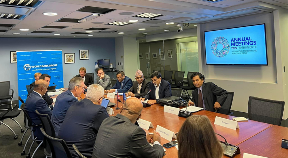 बिहीबार वाशिङ्गटन डिसीमा भएकाे भेटमा अर्थमन्त्री शर्माले मार्टिनसँग विश्व बैंकसँग हिमालय क्षेत्रको संरक्षण, ग्रामीण क्षेत्रको आर्थिक पुनरुत्थान र नदी क्षेत्रको हरित करिडोरको लागि विश्व बैंकले तय गरेका विभिन्न कार्यक्रममा नेपाललाई पनि प्राथमिकतामा राख्न अनुरोध समेत गरेका हुन् ।