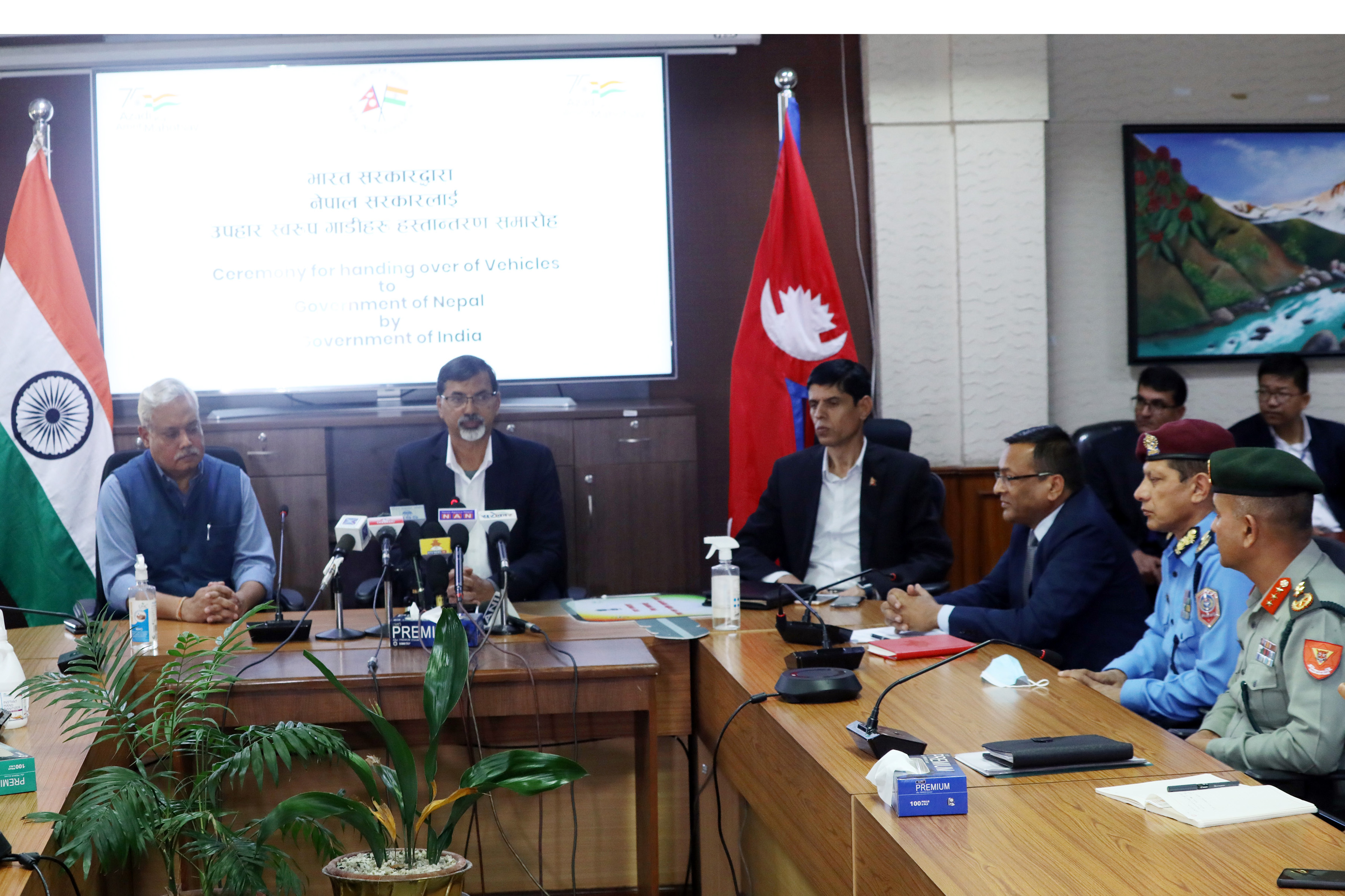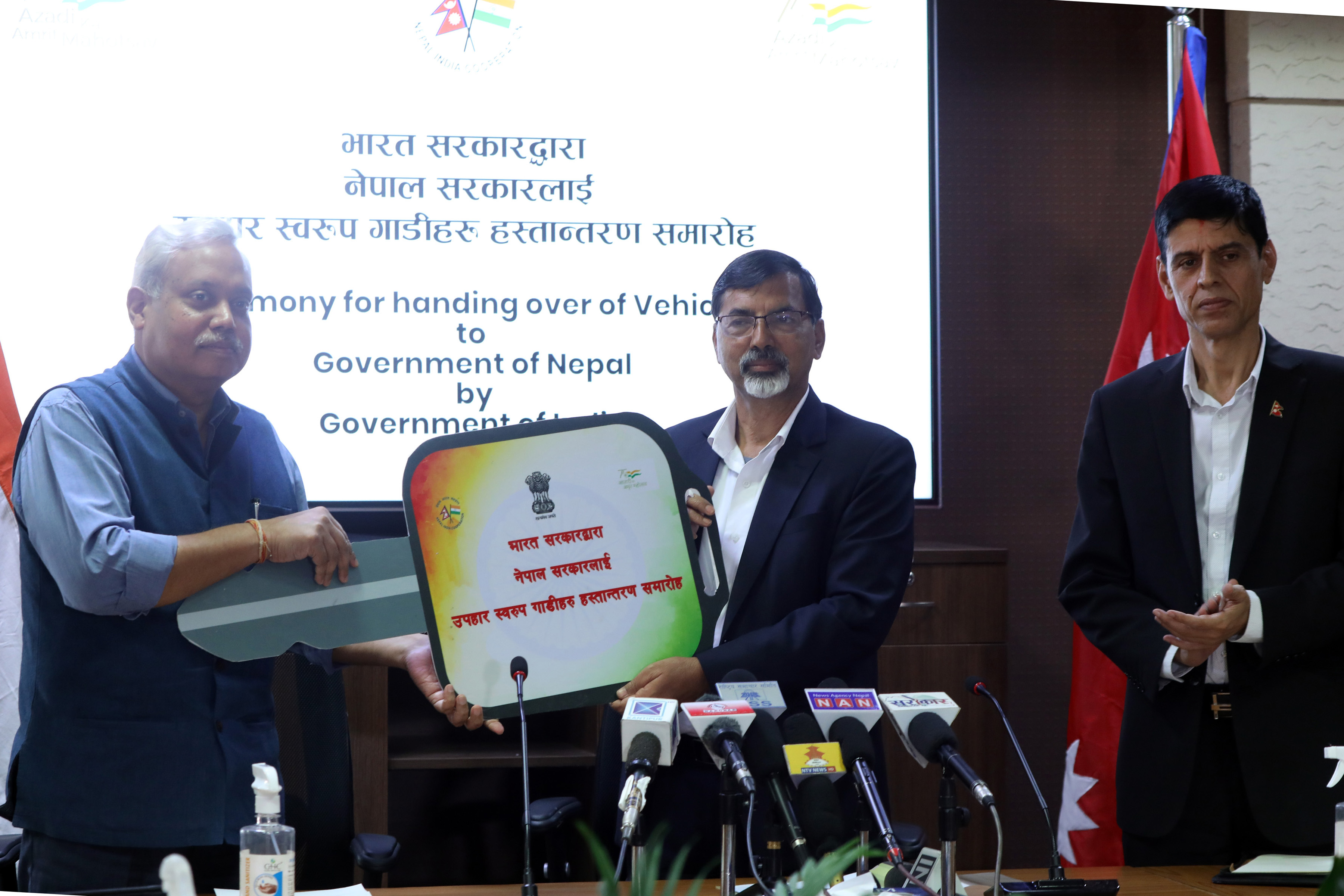 नेपालको आग्रहमा भारत सरकारबाट उपहारस्वरुप ती सवारी साधन प्राप्त भएकामा धन्यवाद ज्ञापन गर्दै अर्थमन्त्री शर्माले भारत हाम्रो महत्वपूर्ण विकास साझेदार रहेको बताउनुभयो ।