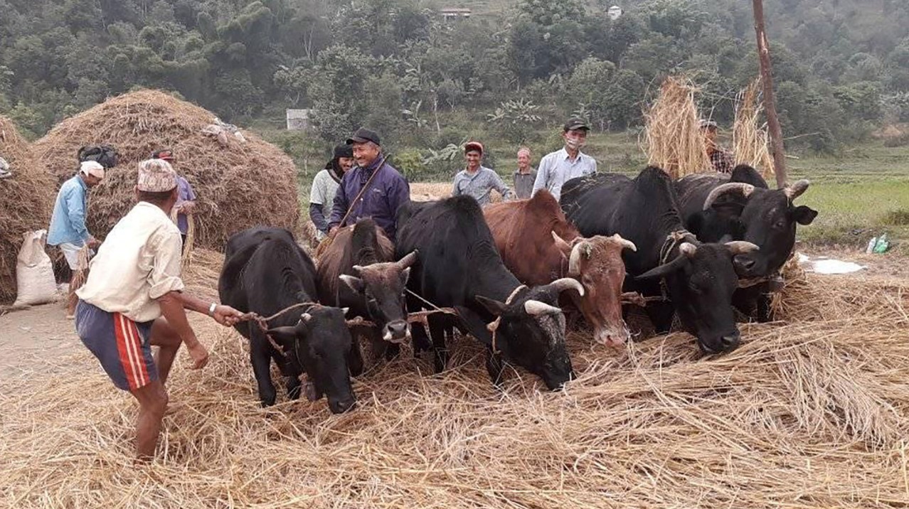 म्याग्दीका ग्रामीण क्षेत्रमा परम्परादेखि नै गोरुको सहायताले दाइँ लगाउने प्रचलन लोपोन्मुख अवस्थामा पुगेको छ ।